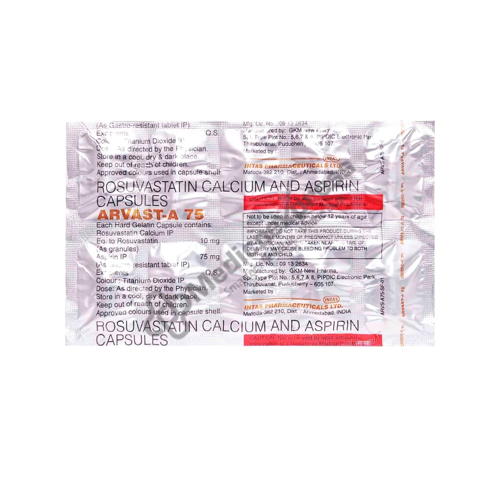 Arvast A 75 Capsule 10's Belongs To a Group Of Antihyperlipidemic And Antiplatelets Used To Treat Heart Attack, Myocardial Infarction (Blockage Of The Blood To Muscles Of The Heart), Angina (Chest Pain), And Stroke. Disclaimer:For More Information Contact Your Physician