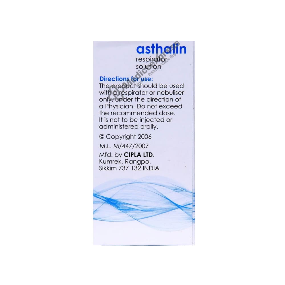 Asthalin Respirator Solution is a type of medicine known as a fast-acting bronchodilator or "reliever." It is used to treat asthma and chronic obstructive pulmonary disease (COPD) symptoms such as coughing, wheezing, and shortness of breath.Disclaimer:For More Information Contact Your Physician