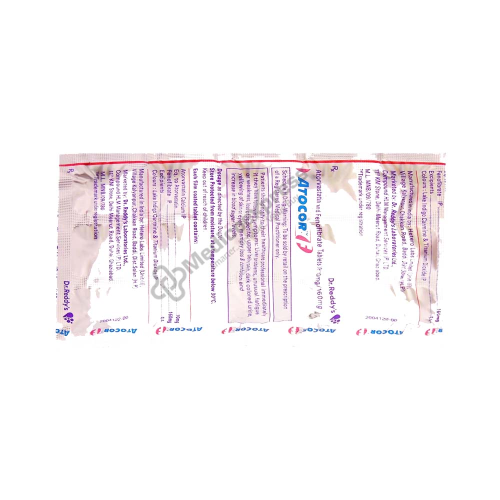 Atocor-F Tablet 15's is primarily used to treat high lipid levels (cholesterol and triglyceride levels), prevent heart disease, and unblock blood vessels. High levels of low-density lipoproteins (LDL), or bad cholesterol, and low levels of high-density lipoprotein (HDL), or good cholesterol, are symptoms of hyperlipidemia, also known as hypertriglyceridemia. A higher amount of poor cholesterol increases the risk of future heart attacks and strokes, particularly in people with heart disease.The two medications Atorvastatin (HMG-CoA reductase inhibitor) and Fenofibrate make up Atocor-F Tablet 15's (fibrates). The cholesterol-producing enzyme HMG-CoA reductase is blocked by the lipid-lowering drug atorvastatin. Disclaimer:For more information contact your physician.
