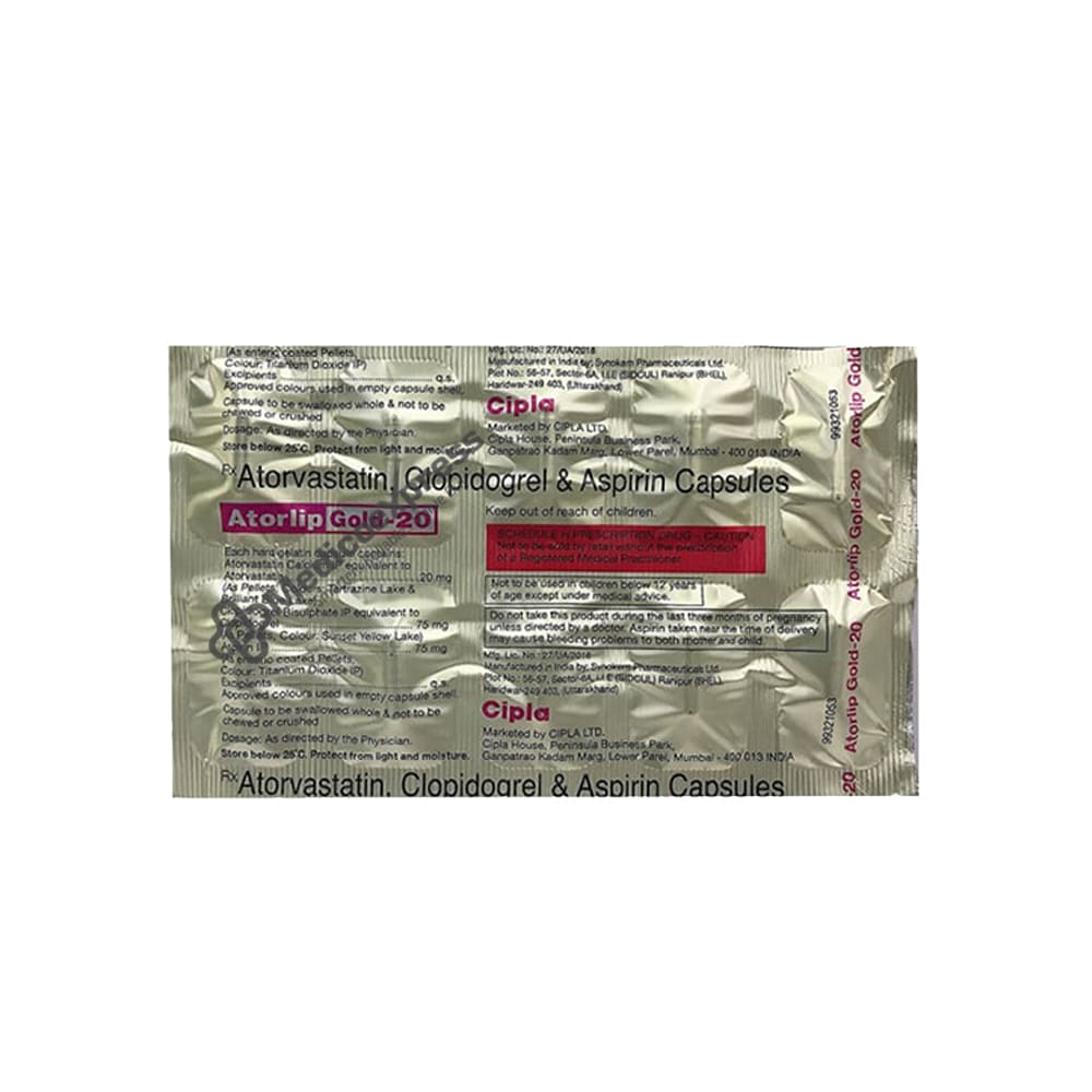 Atorlip Gold 20 Capsule 10's is a drug that combines blood-thinning and cholesterol-lowering agents and is used to prevent heart attacks and strokes. It also reduces the elevated level of cholesterol in our bodies.Disclaimer:For More Information Contact Your Physician