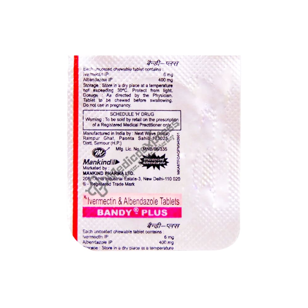 Bandy Plus Tablet 1's An Antihelmintic Medicine That Is Used To Treat Parasitic Worm Infestations.Disclaimer:For More Information Contact Your Physician