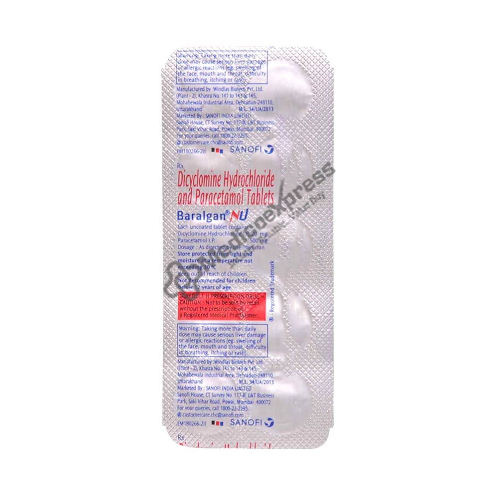 Baralgan nu tablet 10's are a combination medication that is primarily used to treat spasmodic pain and discomfort caused by biliary colic, intestinal colic, renal colic, and spasmodic dysmenorrhea (painful irregular periods).Disclaimer:For more information contact your physician