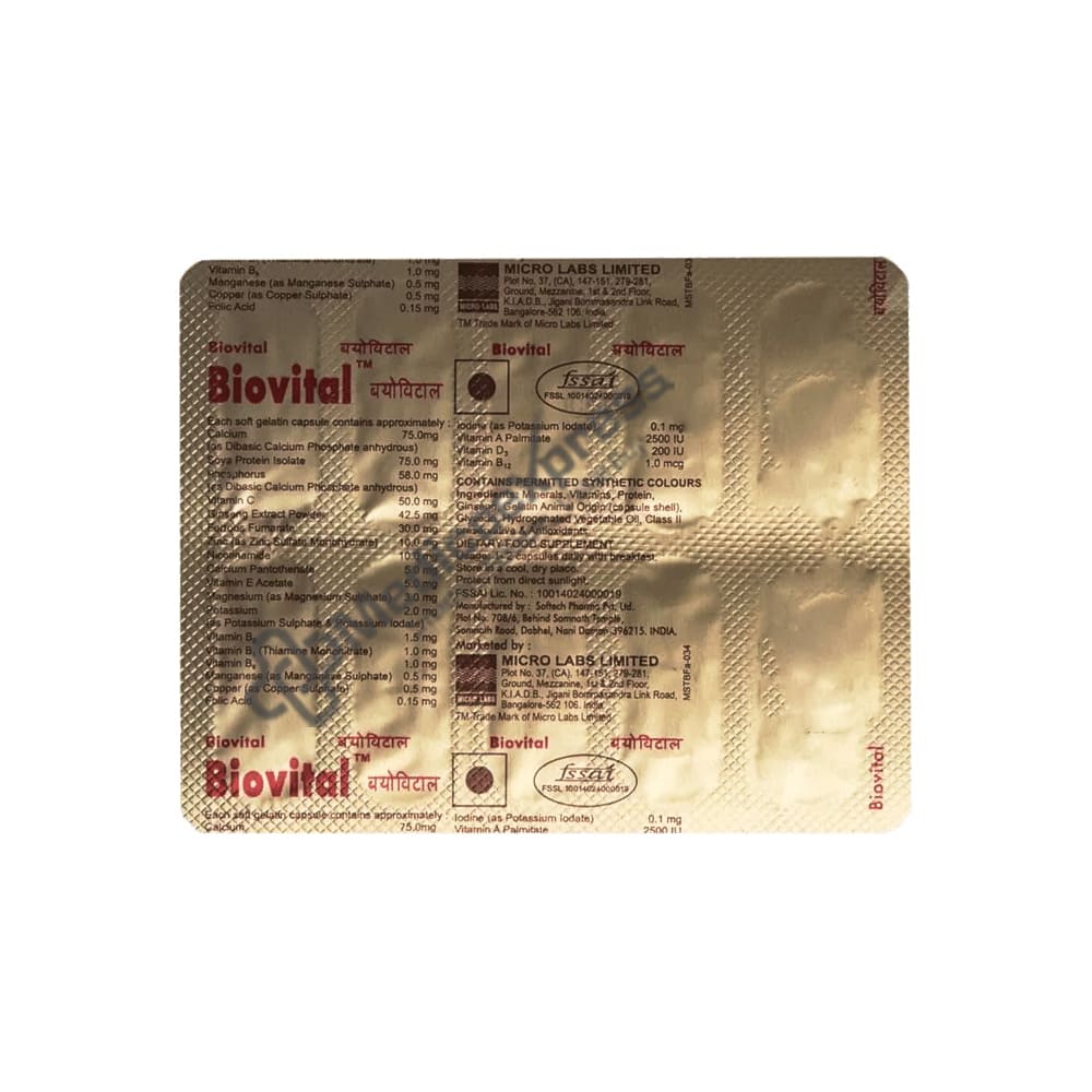 Biovital Capsule 15'S Promotes Endurance And Stamina By Sparing Carbohydrates And Allowing Skeletal Muscle To Oxidise Free Fatty Acids For Energy Production.Disclaimer:For More Information Contact Your Physician