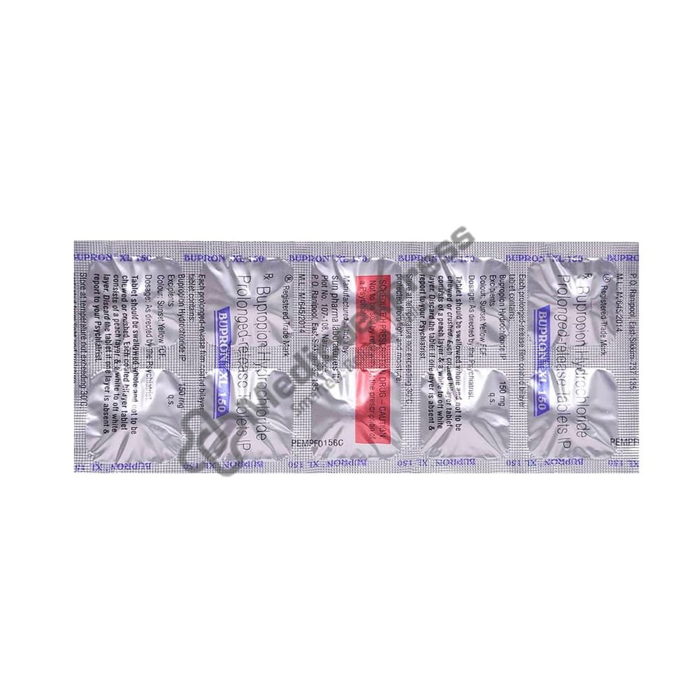 Bupron XL 150 Tablet is prescribed to treat depression and smoking addiction. This medication works by increasing the amount of chemical messengers in the brain that relax the nerves and have a calming effect on the brain.Disclaimer:For More Information Contact Your Physician
