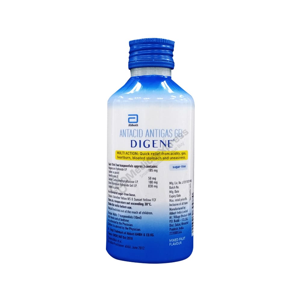 Digene Gel Acidity & Gas Relief - 200ml Mixed Fruit Flavour Is An Antacid That Is Used To Treat Acidity, Heartburn, Indigestion, Gastritis (Stomach Inflammation), And Stomach Upset.Disclaimer:For More Information Contact Your Physician