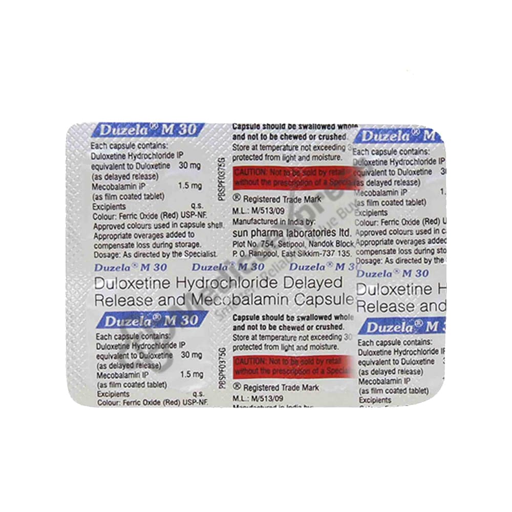 Duzela M 30 Capsule 10 is an anticonvulsant medication that is used to treat neuropathic pain. Neuropathic pain is a chronic (long-term) progressive nerve disease that causes nerve pain as a result of nerve damage or a malfunctioning nervous system.Disclaimer:For More Information Contact Your Physician