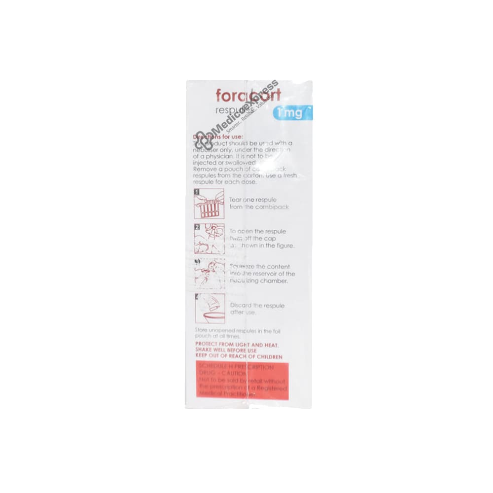Foracort 1mg Respules 2ml is a two-in-one inhaler that contains two medications. It alleviates the long-term symptoms of asthma and COPD, making breathing easier. It works by inhibiting the release of certain chemical messengers that cause inflammation (swelling) and relaxing the muscles in the airways.Disclaimer:For More Information Contact Your Physician