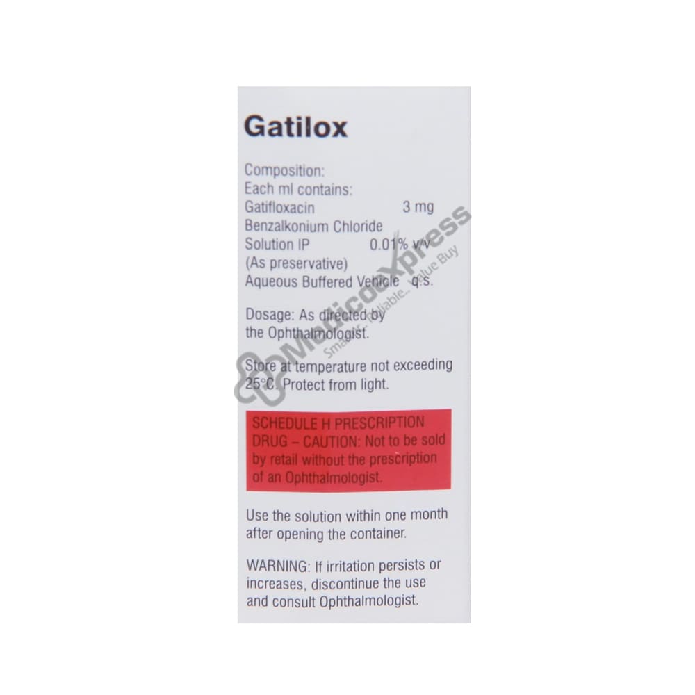 GATILOX 0.3% contains Gatifloxacin, an antibiotic that belongs to the fluoroquinolone class. It is used to treat bacterial conjunctivitis (infections) and relieves symptoms by preventing the growth of the causative microorganisms. Bacterial conjunctivitis is an infection of the conjunctiva, the mucous membrane that extends from the back surface of the eyelids.Disclaimer:For More Information Contact Your Physician