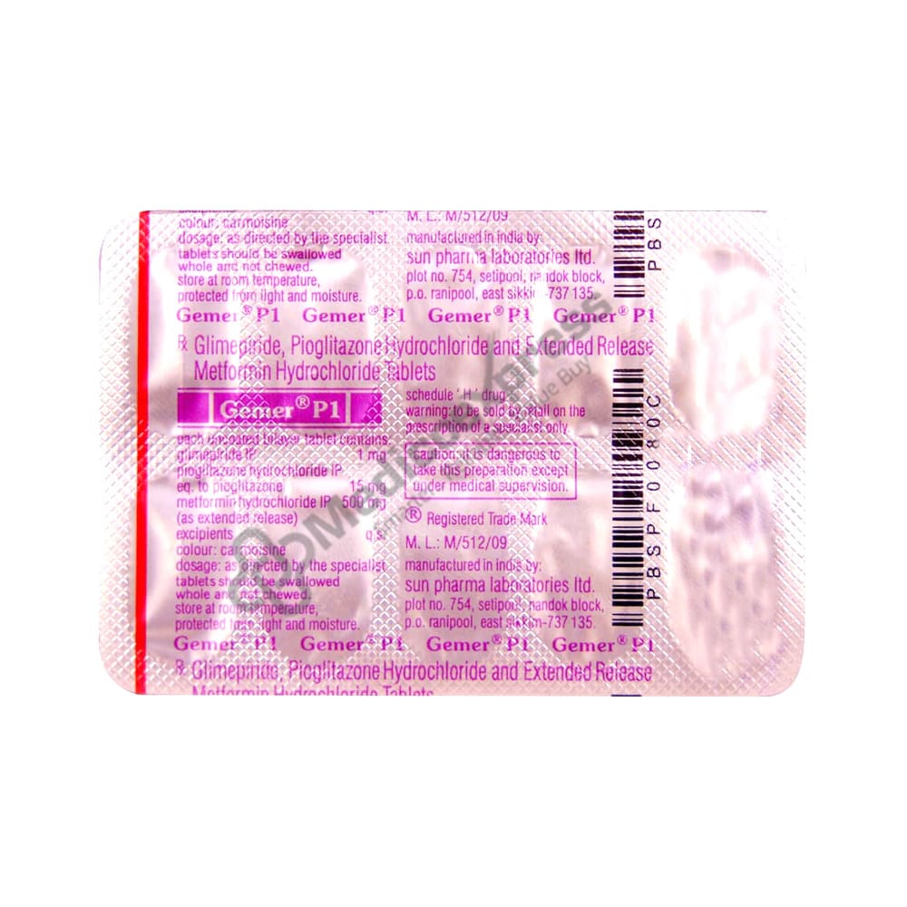 Gemer P1 Tablet 10's Belongs To The Class Of Medications Known As 'Antidiabetic Agents,' Which Are Used To Treat Type 2 Diabetes Mellitus.Disclaimer:For More Information Contact Your Physician