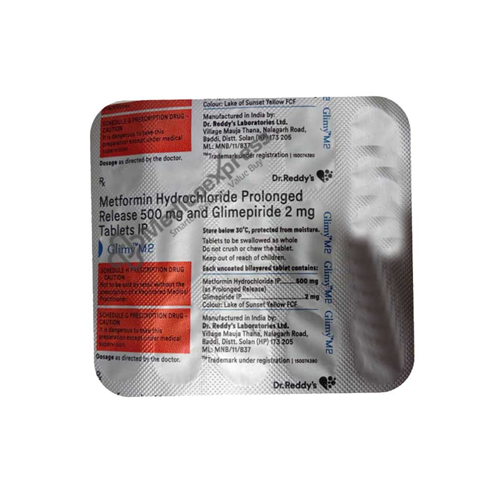 Glimy M 2 mg Tablet 15's are part of a group of pharmaceuticals known as anti-diabetic drugs that are used to treat type 2 diabetes, particularly in people whose blood sugar levels are not under control via diet and exercise alone. Type 2 diabetes affects how our bodies metabolise glucose and is a chronic (long-lasting) disorder. In people with type 2 diabetes, the amount of insulin produced is either insufficient or the insulin cannot work properly in the body (insulin resistance). Glimepiride and metformin are the two anti-diabetic medications included in Glimy M 2 mg Tablet 15's. The way glimepiride works is by activating the pancreatic beta cells that make insulin. As a result, insulin aids in the elimination of blood sugar. Metformin PR is a prolonged-release medication that disperses the substance over a longer period of time.Disclaimer:For more information contact your physician.