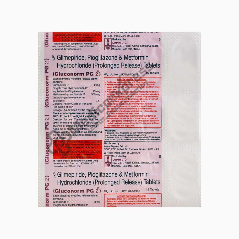 Gluconorm Pg 2 Tablet 15's Belongs To The Class Of Medications Known As 'Antidiabetic Agents,' Which Are Used To Treat Type 2 Diabetes Mellitus.Disclaimer:For More Information Contact Your Physician