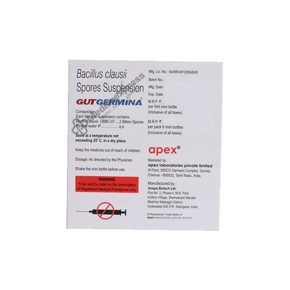 Gutgermina Oral Suspension 5 ml, are used to correct imbalances and changes in intestinal bacterial flora brought on by diarrhoea or while taking drugs like antibiotics and chemotherapy. Additionally, it aids in nutrient absorption and the treatment of dysvitaminosis. People with gastrointestinal issues like flatulence and irregular bowel movements benefit from using Gutgermina Oral Suspension 5 ml.Disclaimer:For more information contact your physician.