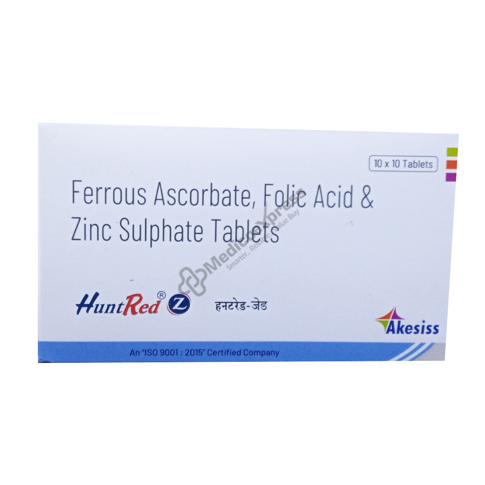 Huntred Z Tablet provides vitamin B9 (Folic acid), iron, and zinc, three vital components needed for the body to operate properly.Disclaimer:For More Information Contact Your Physician