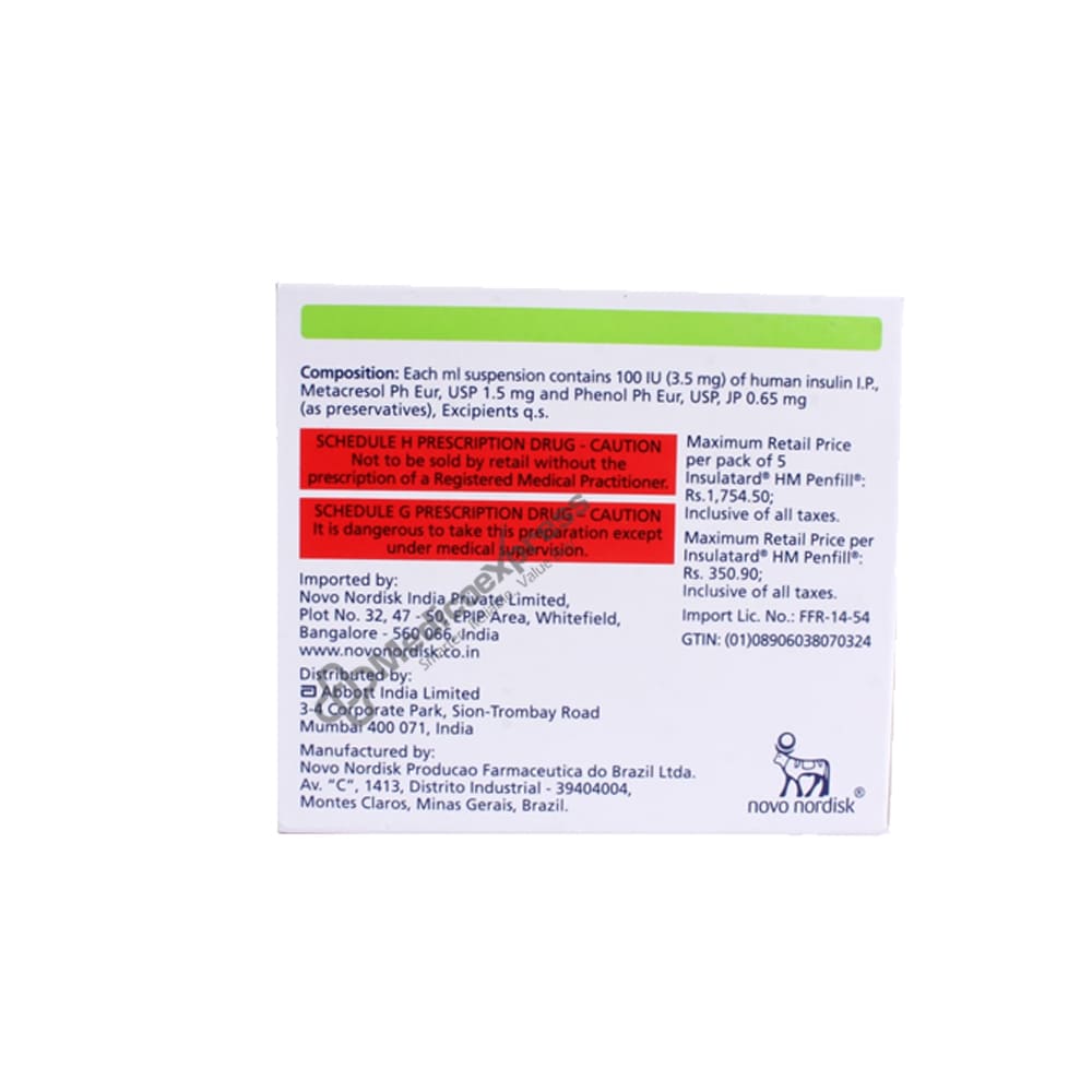 Insulatard HM Penfill 3 ml contains human insulin, which is used to improve blood sugar control in people with type 1 and type 2 diabetes mellitus in both adults and children. Both adults and children's blood sugar levels are maintained by it. The condition known as diabetes mellitus affects how your body uses glucose. When a person has type 1 diabetes, their body does not produce enough insulin to regulate blood sugar levels.Disclaimer : For More Details, Contact Your Physician