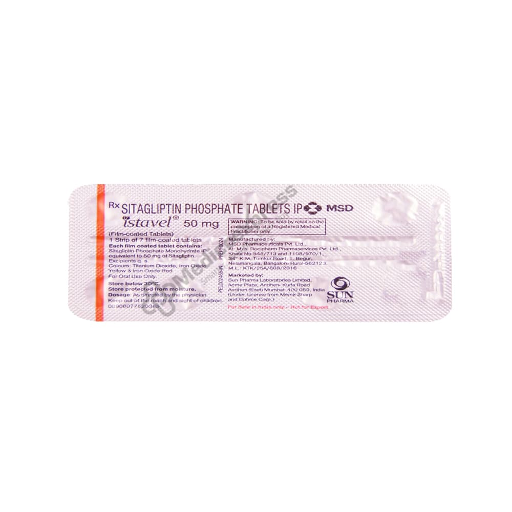 Istavel 50 Mg Tablet 7's Contains Sitagliptin, a Dipeptidyl Peptidase-4 (Dpp-4) Inhibitor That Is Used To Treat Type 2 Diabetes In Adults.Disclaimer:For More Information Contact Your Physician