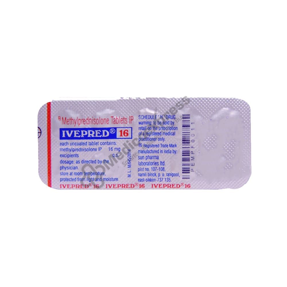 Ivepred 16 Tablet 10 belongs to the steroid or corticosteroid medication class. Corticosteroids are not the same as anabolic steroids.Disclaimer:For More Information Contact Your Physician