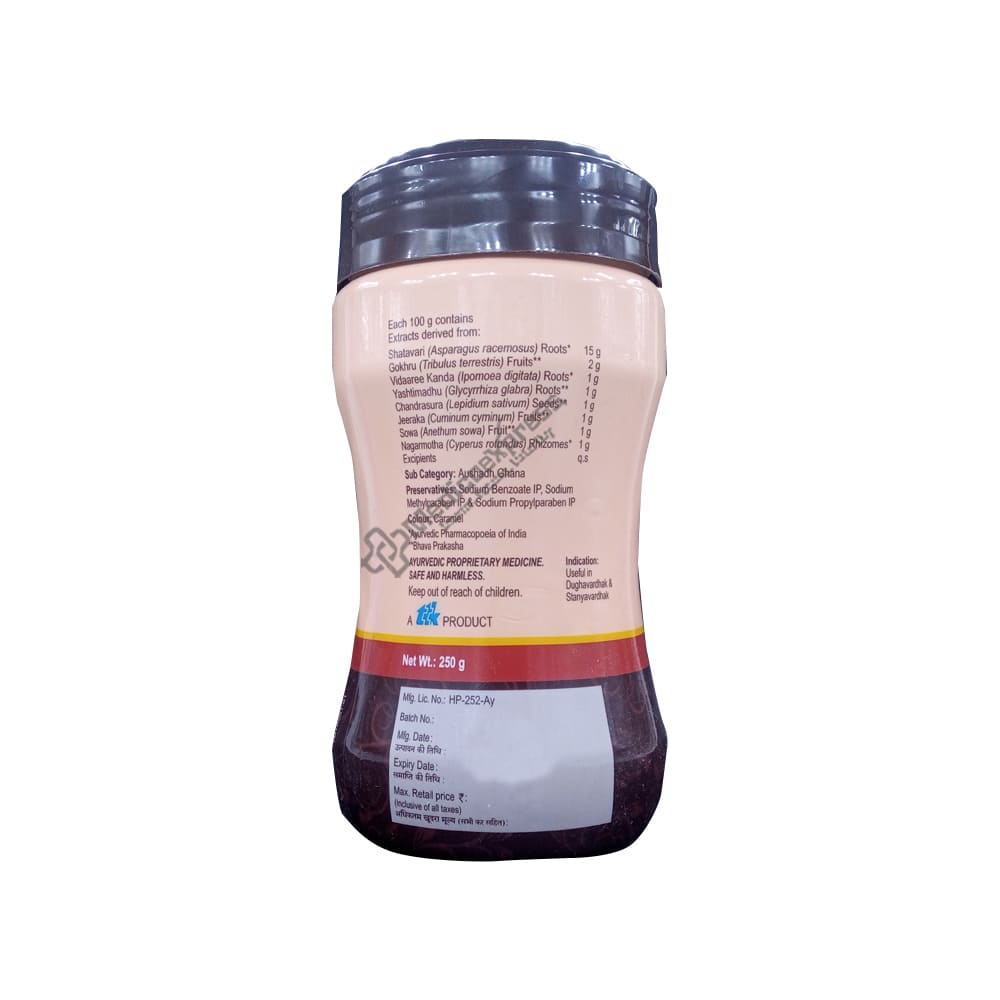 Shatavari 15.0gm + gokhru 2.0gm + vidaaree kanda 1.0gm + yashtimadhu 1.0gm + chandrasura 1.0gm + jeeraka 1.0gm + sowa 1.0gm + nagarmotha 1.0gm