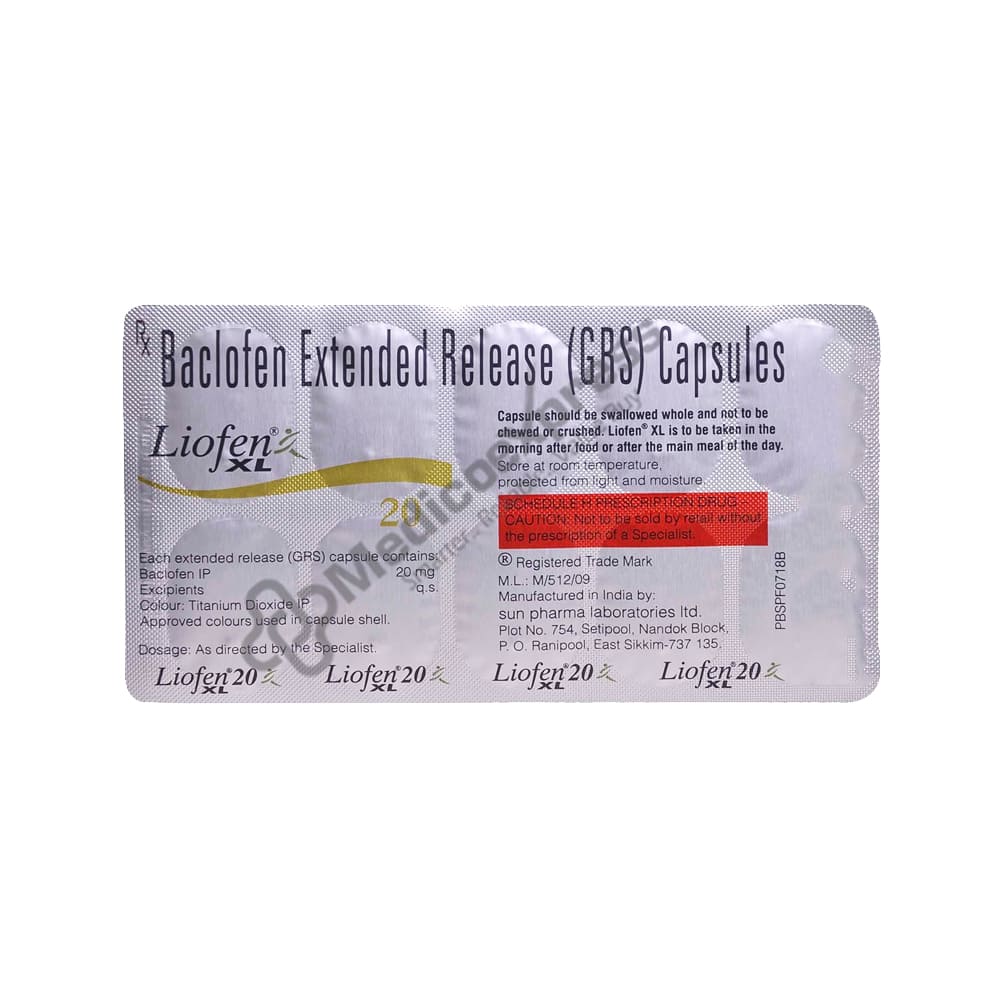 Liofen XL 20 Capsule 10 belongs to the class of medications known as "muscle relaxants," which are used to reduce and relieve muscle spasms (excessive muscle tension) caused by a variety of illnesses.Disclaimer:For More Information Contact Your Physician