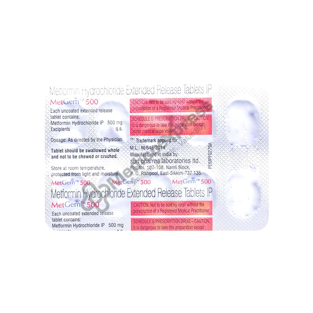 MetGem 500 Tablet 10 belongs to a class of anti-diabetic medications known as biguanides, which are used to treat diabetes.Disclaimer:For More Information Contact Your Physician