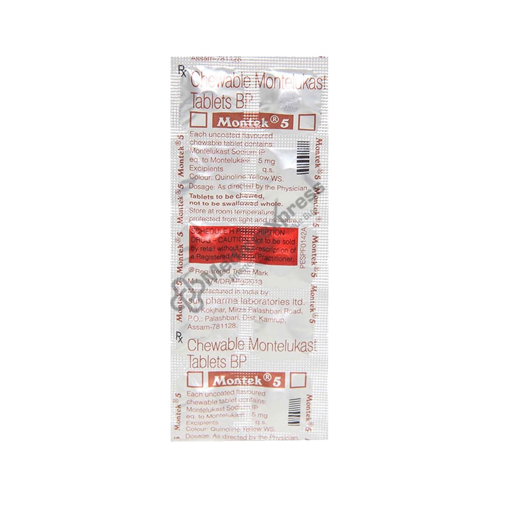 Montek 5 Tablet 10 consists of an anti-allergic medication that is primarily used to treat seasonal allergies and asthma. An allergy is a reaction of your immune system to a foreign element that is usually not harmful to your body. These foreign substances are referred to as 'allergens.' Asthma is a local inflammatory disease of the lungs and airways characterised by exaggerated airway narrowing and the production of extra mucus in response to specific triggers such as viruses, allergens, and exercise.Disclaimer:For More Information Contact Your Physician