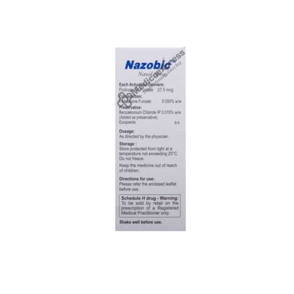 Nazobic Nasal Spray 6 gm belongs to the class of drugs known as glucocorticoids. Nazobic Nasal Spray 6 gm is primarily used to treat allergic rhinitis symptoms (inflammation of the inner mucous membrane of the nose), including sneezing, runny nose, and sinus discomfort in adults and children over the age of six. An allergy is a reaction of your immune system to a foreign element that is usually not harmful to your body. These foreign substances are referred to as 'allergens.'Disclaimer:For More Information Contact Your Physician