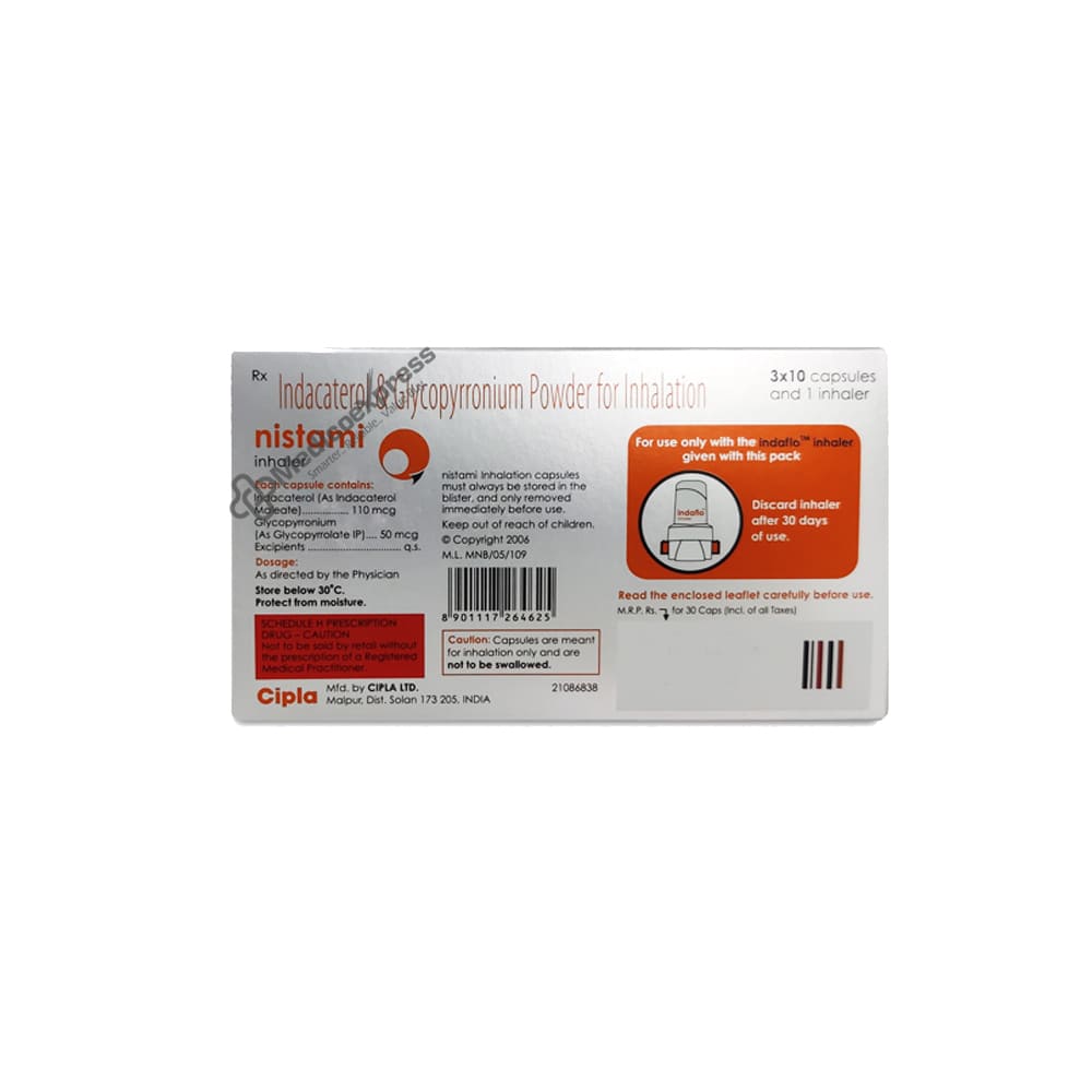 Nistami inhaler is a respiratory medication used as maintenance therapy for chronic obstructive pulmonary disease (COPD). The active ingredients in Nistami inhaler are glycopyrronium and indacaterol.Disclaimer:For More Information Contact Your Physician