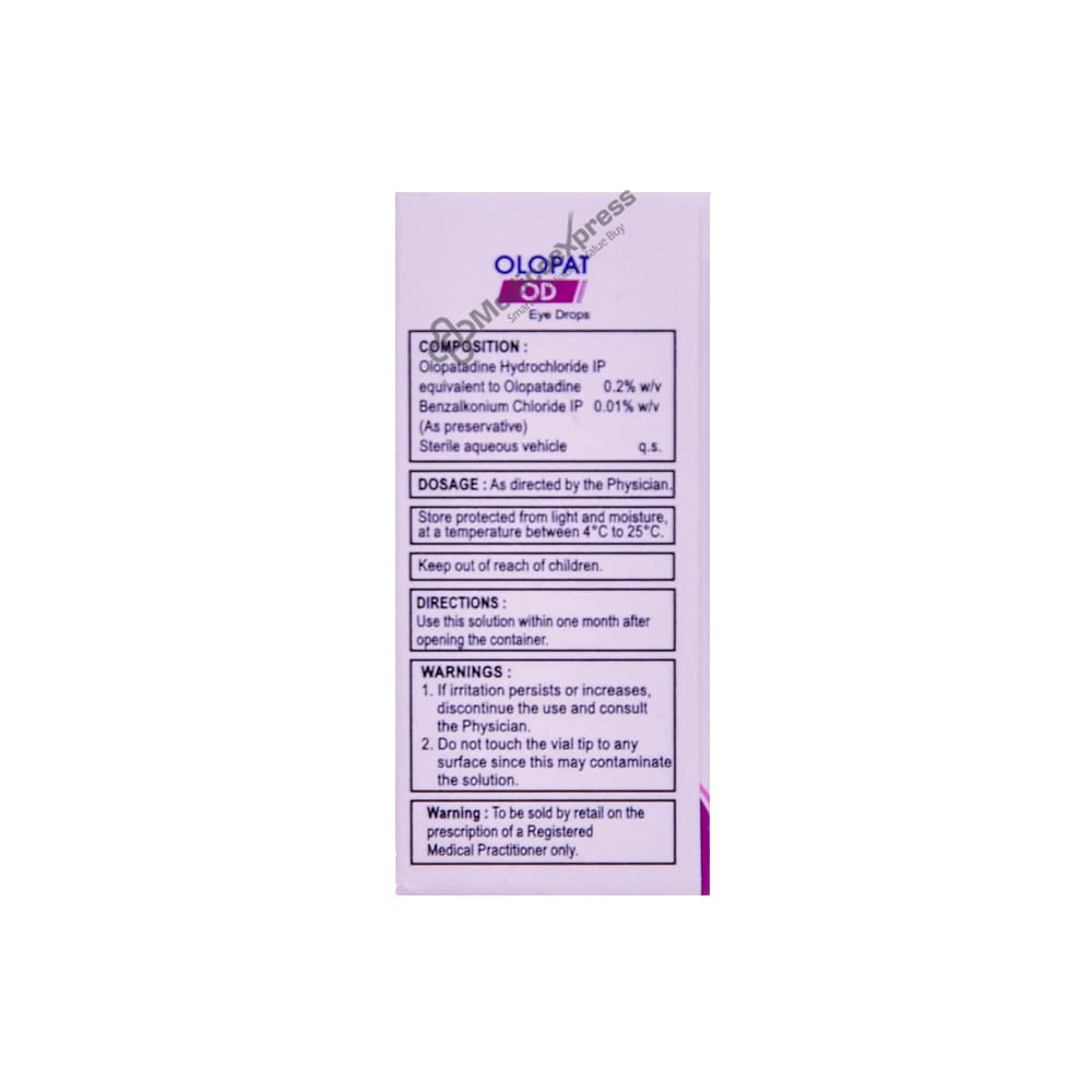 Olopat OD Eye Drops 3 ml is an antihistamine, which is primarily used to treat the signs and symptoms of seasonal allergic conjunctivitis. It is also used to treat itching and redness in the eyes caused by pollen, ragweed, grass, animal hair, or dander. Allergic conjunctivitis is an allergic reaction-induced inflammation of the conjunctiva (the clear tissue that covers the white part of the eye and the inside of the eyelids).Disclaimer:For More Information Contact Your Physician