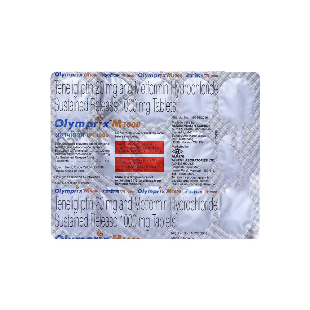 Olymprix M 1000 mg Tablet 15's are a member of the class of drugs known as "antidiabetic agents," which are used to treat Type 2 diabetes mellitus. When used by diabetic individuals who don't respond well to Metformin alone, this medicine helps them maintain better glycemic control. Blood sugar or glucose levels rise over normal in type 2 diabetes mellitus, a chronic or lifelong illness. It happens when the body cannot adequately use insulin that is created or when there is insufficient insulin being produced by the body (which metabolises glucose).Disclaimer:For more information contact your physician.