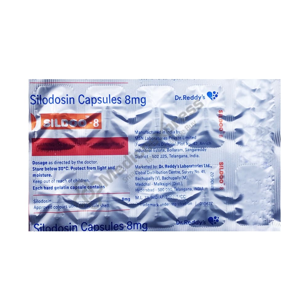 Sildoo-8 capsule 10's is an alpha-blocker medication intended to treat the symptoms of an enlarged prostate gland (benign prostatic hyperplasia - bph) in males.Disclaimer:For more information contact your physician