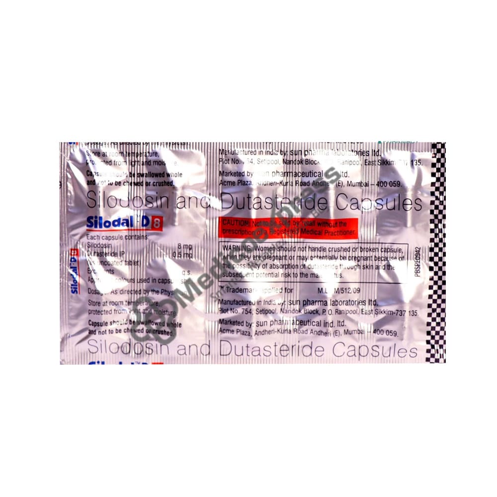 Silodal-D 8 Capsule 10's a Medication Combination That Is Primarily Used To Treat The Symptoms Of Benign Prostatic Hyperplasia (Bph) In People Who Have An Enlarged Prostate Gland.Disclaimer:For More Information Contact Your Physician