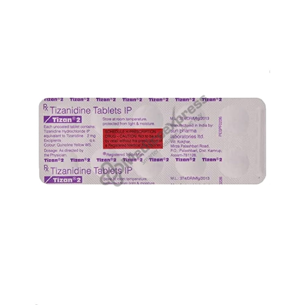TIZAN 2MG contains Tizanidine, which belongs to the class of drugs known as skeletal muscle relaxants. It is used to treat muscle stiffness and restriction caused by multiple sclerosis, spinal cord injury, or diseases.Disclaimer:For More Information Contact Your Physician