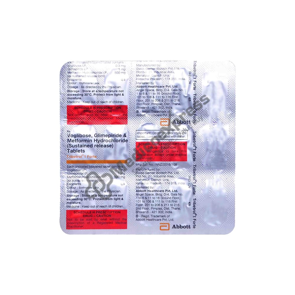 Tribetrol 1 Forte Tablet 15's is an anti-diabetic drug combination used to treat type 2 diabetes mellites. Type 2 diabetes is a long-term condition that affects how your body processes glucose. Type 2 diabetes patients either do not produce enough insulin or, if insulin is produced, it is unable to perform its function in the body (insulin resistance). As a result, the blood glucose level rises, triggering symptoms such as frequent urination, increased thirst, and increased hunger.Disclaimer:For More Information Contact Your Physician