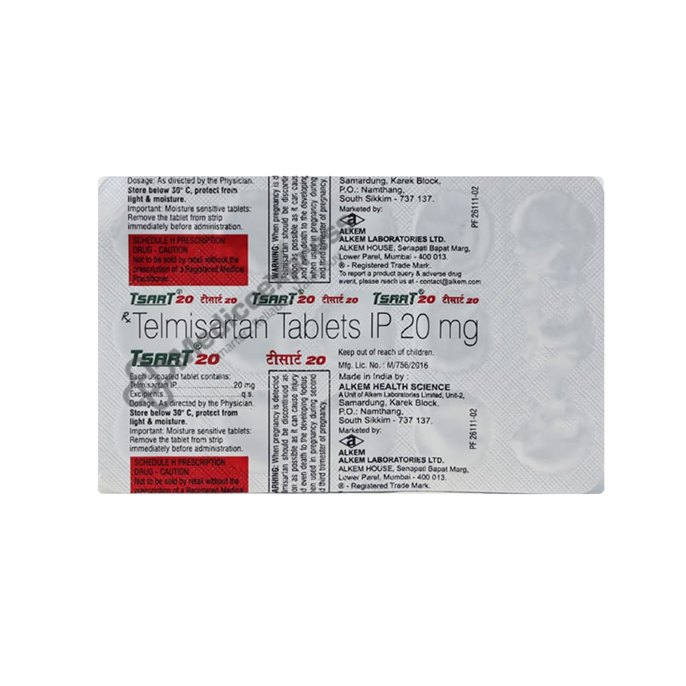 Tsart 20mg Tablet 15'S aids in the reduction of muscular discomfort. It functions by preventing the production of specific chemical messengers that bring on discomfort, inflammatory reactions, and fever. This facilitates better muscular movement and relieves pain and discomfort.Take the Tsart 20mg Tablet 15'S with meals. You won't experience stomach upset as a result of doing this. Your condition's severity will determine the dosage and timeframe. Even if you feel better, you should continue taking the medication until the doctor gives the all-clear to quit.Some typical side effects of this medication include nausea, vomiting, heartburn, stomach pain, diarrhoea, loss of appetite, and dry mouth.Disclaimer:For more information contact your physician.