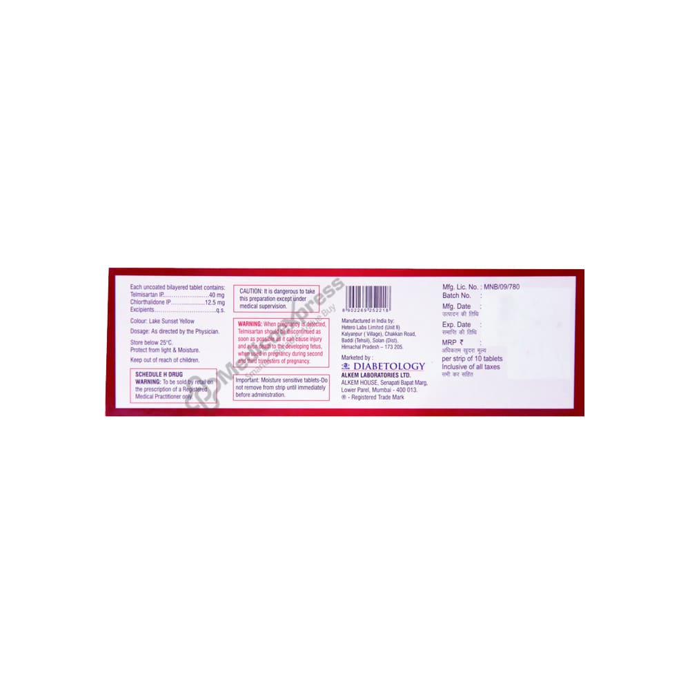 Tsart-40 CT Tablet 10s are one of the group of anti-hypertensives used to treat excessive blood pressure (high blood pressure). A lifelong or chronic illness known as hypertension causes an excessively high blood pressure against the arterial wall. It raises the possibility of developing heart conditions like heart attack and stroke. Angiotensin II receptor antagonist Telmisartan and chlorthalidone are combined in Tsart-40 CT Tablet 10s (thiazide diuretic or water pill). Angiotensin receptor blocker telmisartan aids in relaxing and widening blood vessels (arteries). Chlorthalidone is a diuretic that stops the body from absorbing extra salt, which reduces fluid retention. Together, they reduce blood pressure and minimise the risk of future heart attacks, strokes, and oedema (fluid retention).Disclaimer:For more information contact your physician.