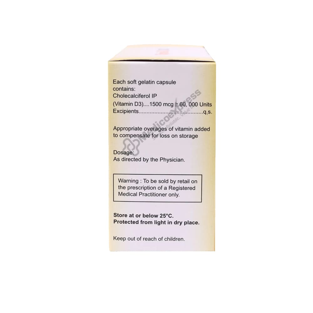 Uprise-D3 60K Capsule 8s are classified as "Vitamins," and their main purpose is to cure low blood calcium levels. Vitamin D deficiency, osteoporosis (weak and brittle bones), hypoparathyroidism (the body's parathyroid glands produce low levels of calcium), latent tetany (a muscle disease with low blood calcium levels), and rickets or osteomalacia are among the conditions that Uprise-D3 60K Capsule 8's effectively treat (softening or deforming of bones due to lack of calcium). A vitamin D deficiency happens when your body has low levels of the vitamin, which can be brought on by poor diet, poor intestinal absorption, or a lack of sun exposure.Disclaimer:For more information contact your physician.