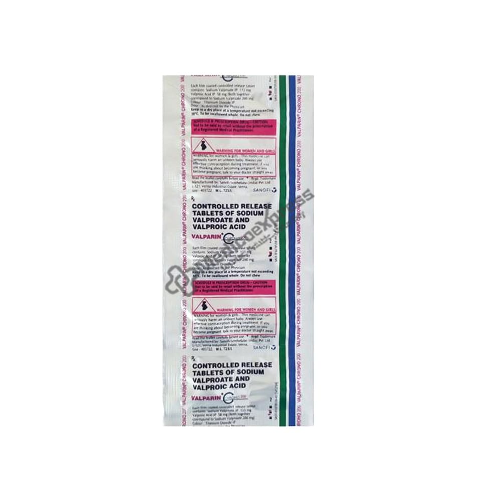 Valparin chono 200mg tab 10's is an anticonvulsant or anti-epileptic medication used to treat epilepsy/seizures/fits.Disclaimer:For more information contact your physician