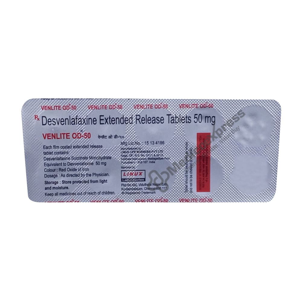 Venlite od 50 tablet 10's belongs to a class of drugs known as antidepressants. It is prescribed for the treatment of depression.Disclaimer:For more information contact your physician